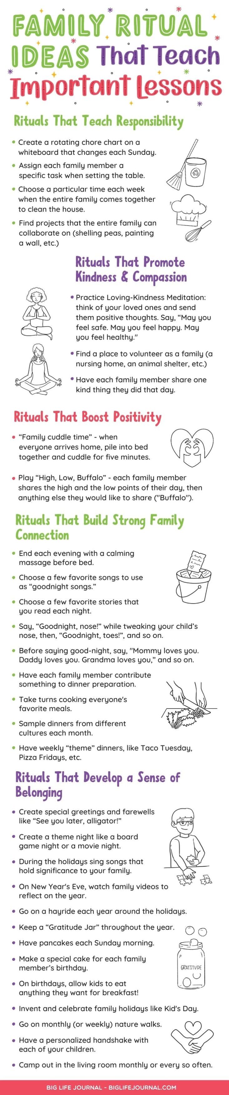 Through rituals, family members can learn to appreciate and understand the values of their family and how they fit into the bigger picture.